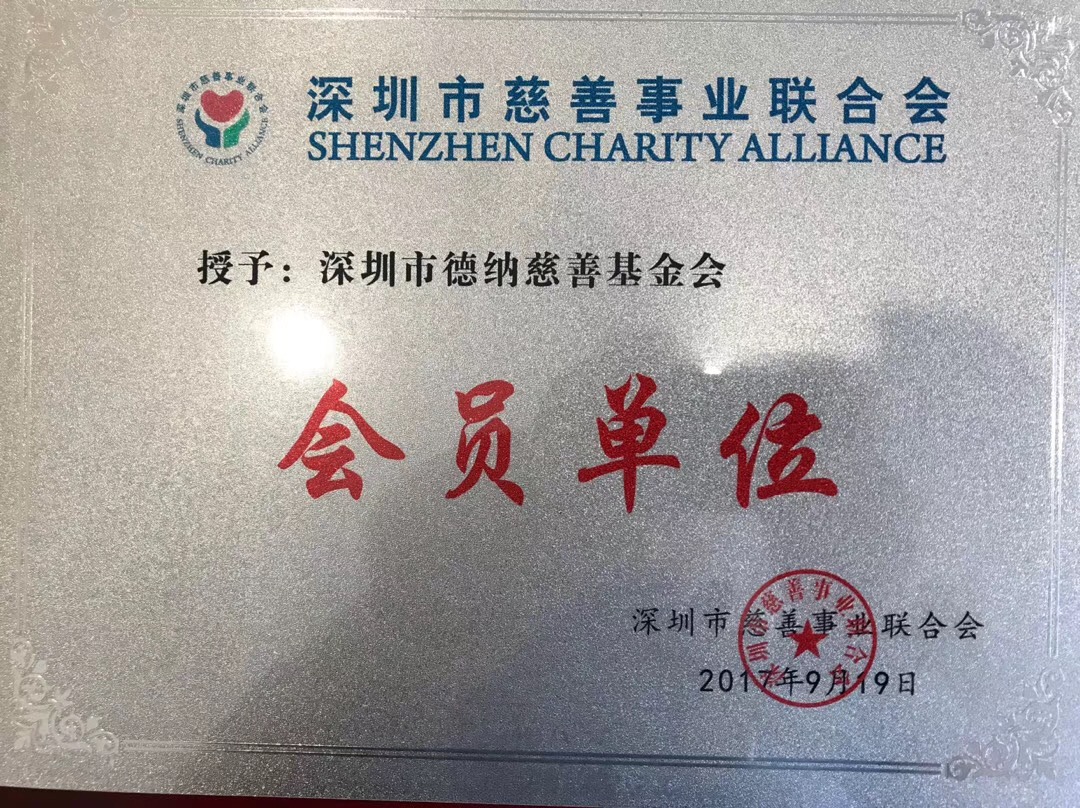 经深圳市慈善事业联合会第一届理事会第四次会议讨论通过,深圳市德纳慈善基金会正式获准加入成为深圳市慈善事业联合会单位会员。